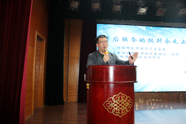 集團副總經理馮磊分享了《不斷強化服務,強力助推市場》的報告。今年是桑樂公司的服務年,集團運營保障將繼續提升服務水平,為市場一線保駕護航。桑樂“首位問責制”、 “一站式服務”、“ VIP客戶綠色通道”正式啟動,桑樂2018產品質量、售后服務、物流規范化不斷提升,助力河北旺季營銷戰打好打贏。促銷活動通過以舊換新、縣鄉聯動活動,樹立區域標桿,緊跟公司各個階段的促銷方案,以點帶面,促銷活動全面開花。